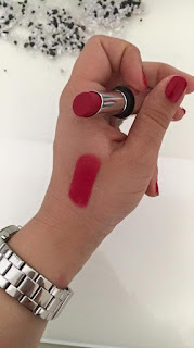 É um vermelho bem chamativo, como não o levava para a escola passou a ser logo o meu batom para as festas e para o domingo hihi não transfere nada, posso comer e beber a vontade sem ter que estar sempre a retocar, ele dura horas e eu adoro isso nele. Já que este me cativou mesmo, passou a ser dos meus favoritos decidi que ia comprar mais e em julho do ano passado aproveitei uma promocao e comprei logo dois